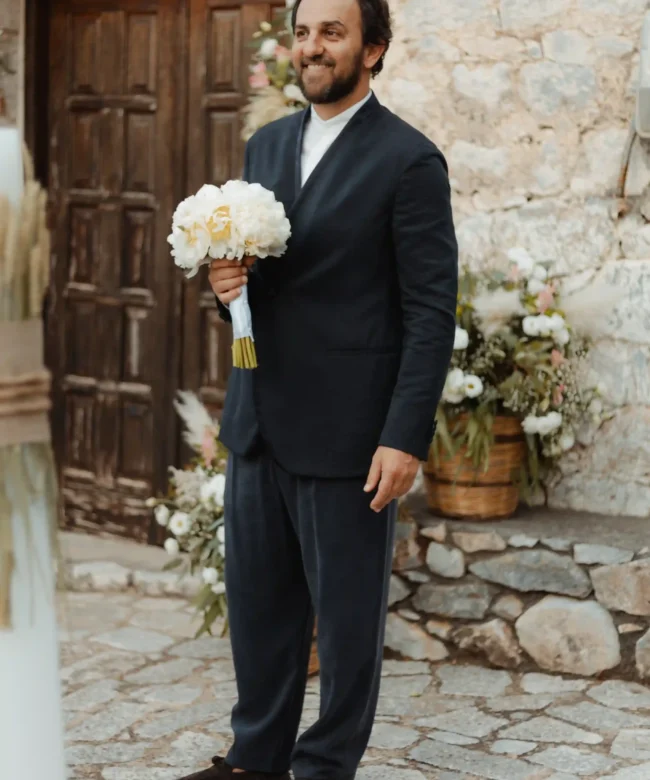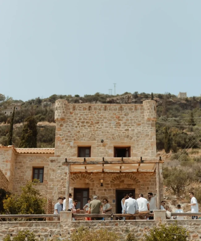 Set against the rugged beauty of Mani’s stone landscape, this wedding embraced a naturally elegant aesthetic where rustic textures met refined details.